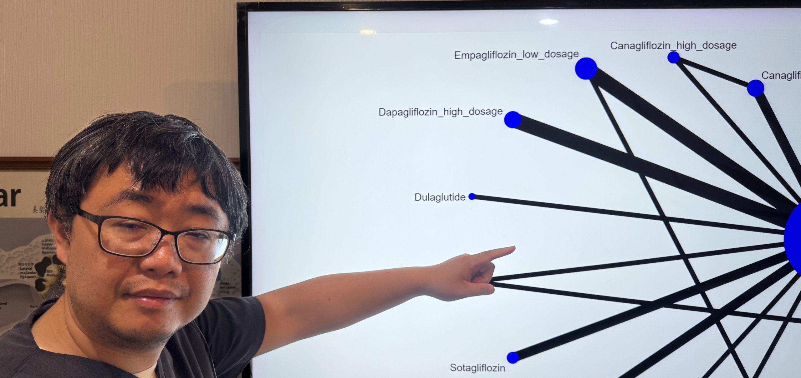 ▲曾秉濤醫師講解網絡統合分析原理示意圖
