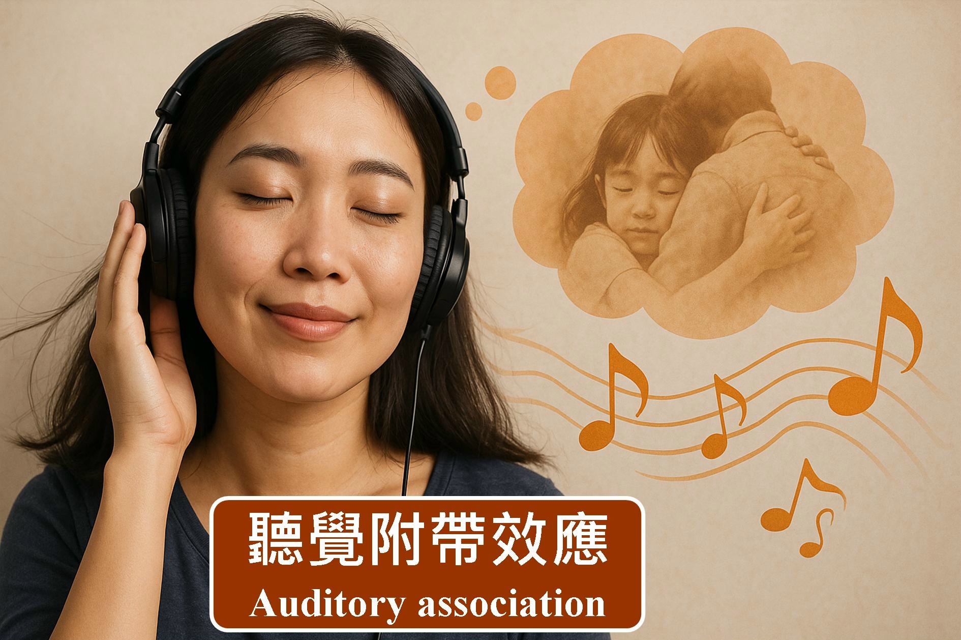 舉例來說,當我們聽到一首熟悉的旋律,不僅僅「聽見」,還會勾起某段回憶、某種情緒反應,這種現象稱為「聽覺附帶效應(auditory association)」。