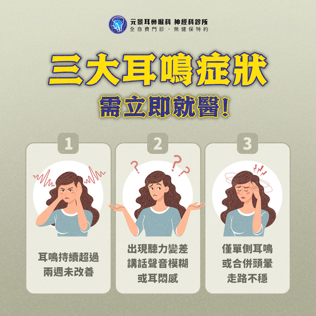 雖然並非所有耳鳴都屬於急症,但有以下狀況時,請務必儘快就醫: